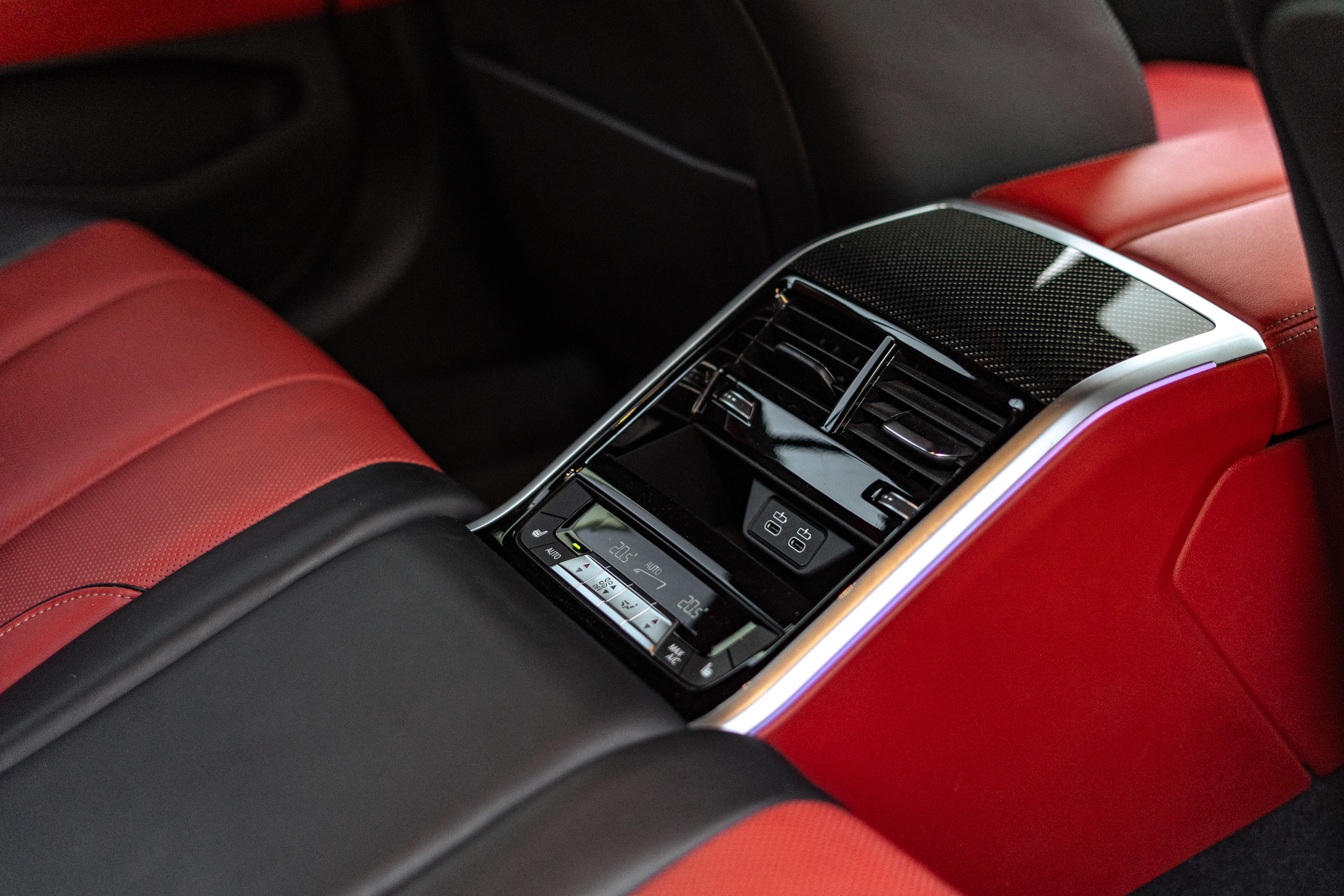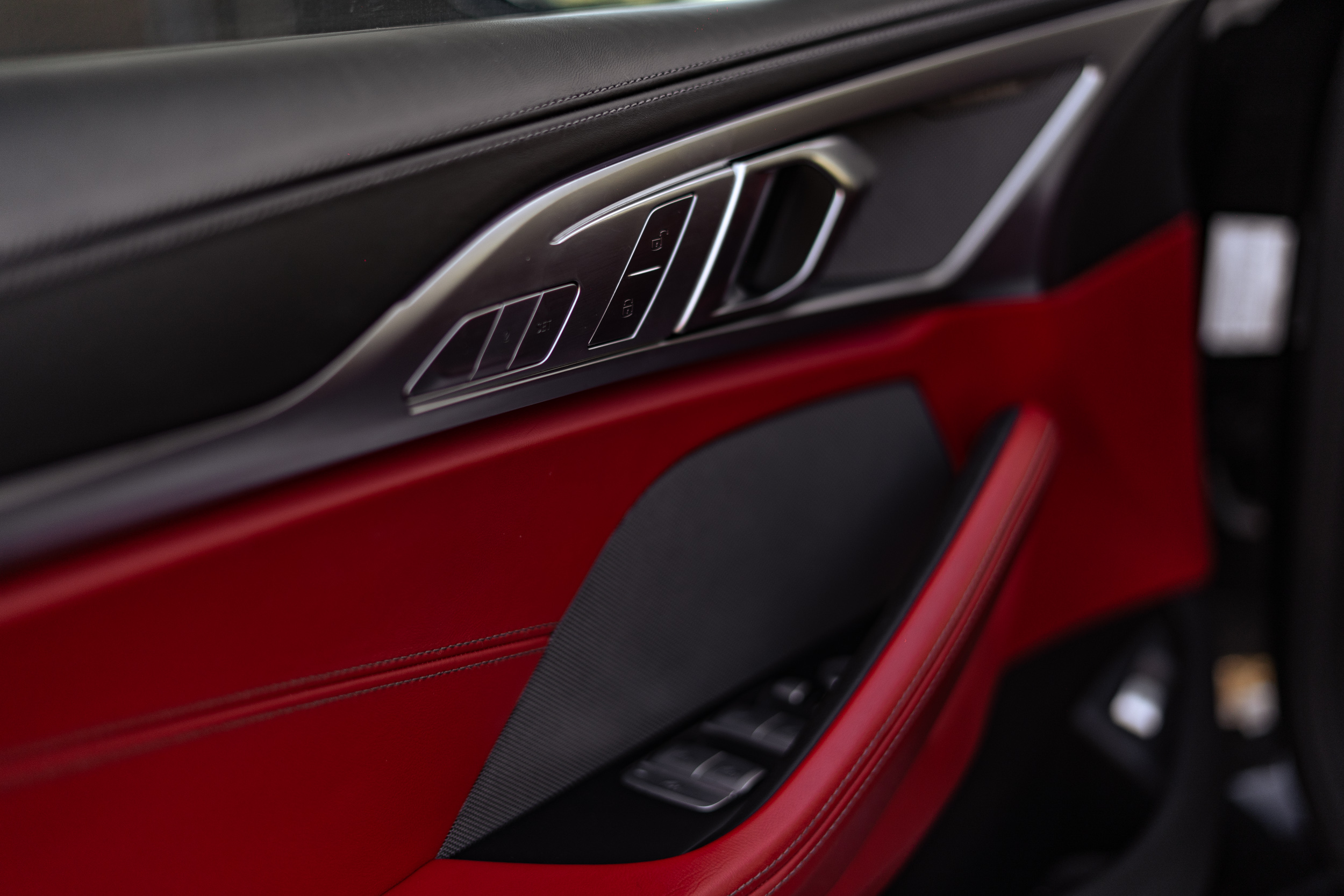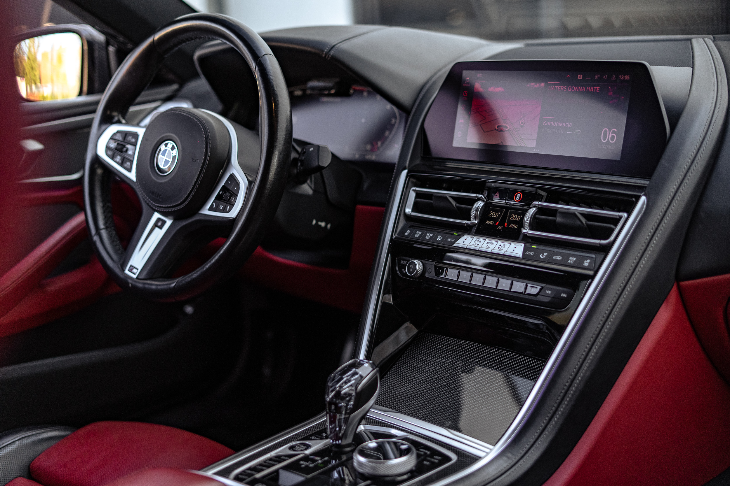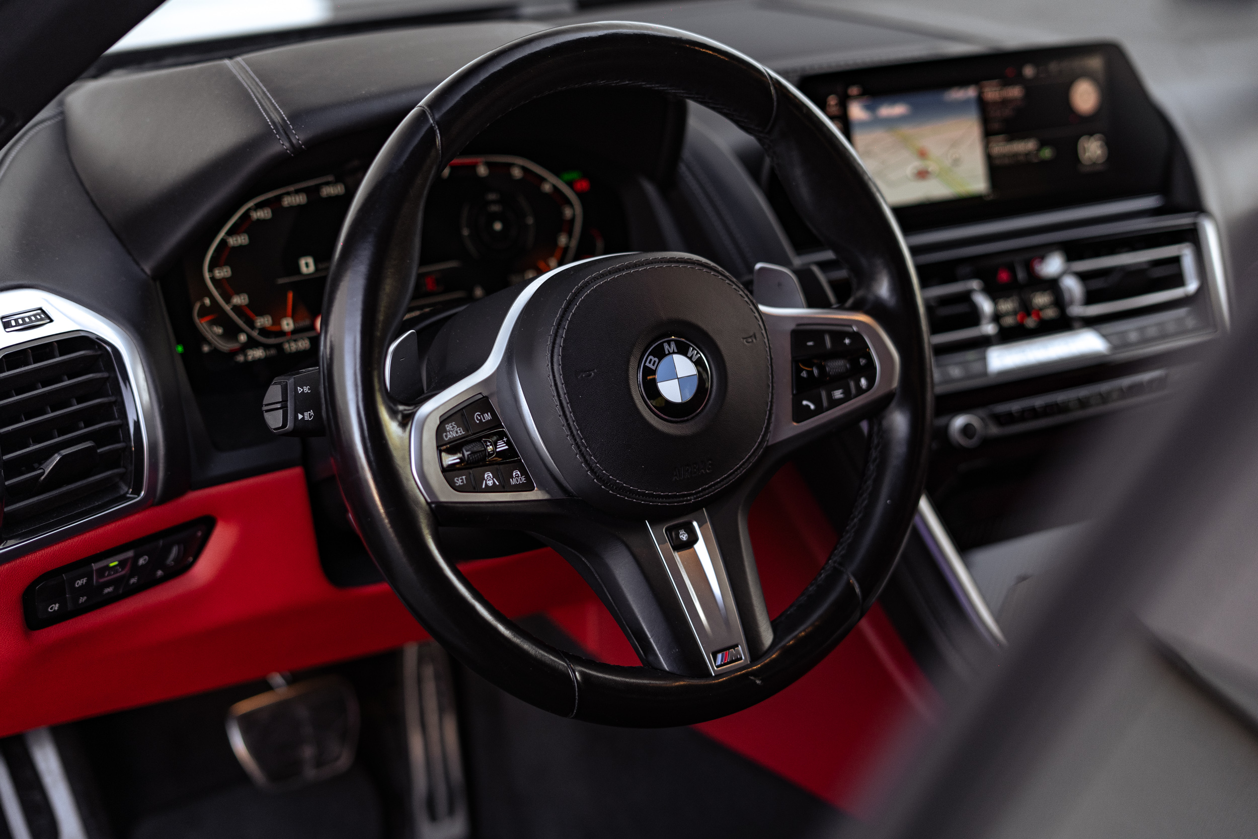Wnętrze to najwyższa jakość wykonania: skóra Merino, podświetlane elementy, karbonowe detale, ambientowe oświetlenie i najnowszy system multimedialny BMW iDrive zapewniają luksus, komfort i elegancję godną serii 8. Fotele M z rozbudowaną regulacją, wentylacją i ogrzewaniem tworzą idealne warunki do długiej, dynamicznej jazdy.